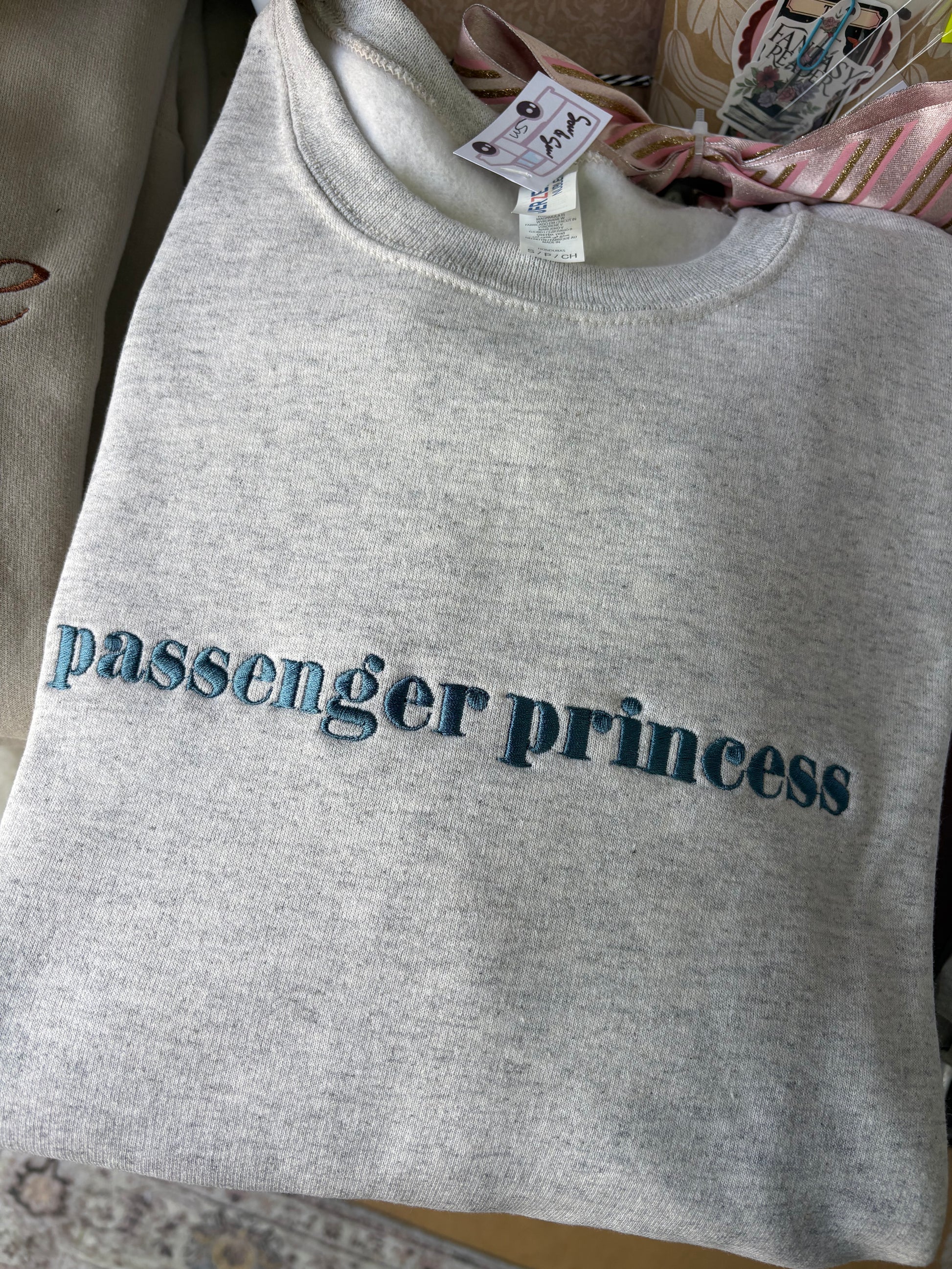 Heather Oatmeal Crewneck with Passenger Princess letting everyone know how to treat you! Please message for available sizes!